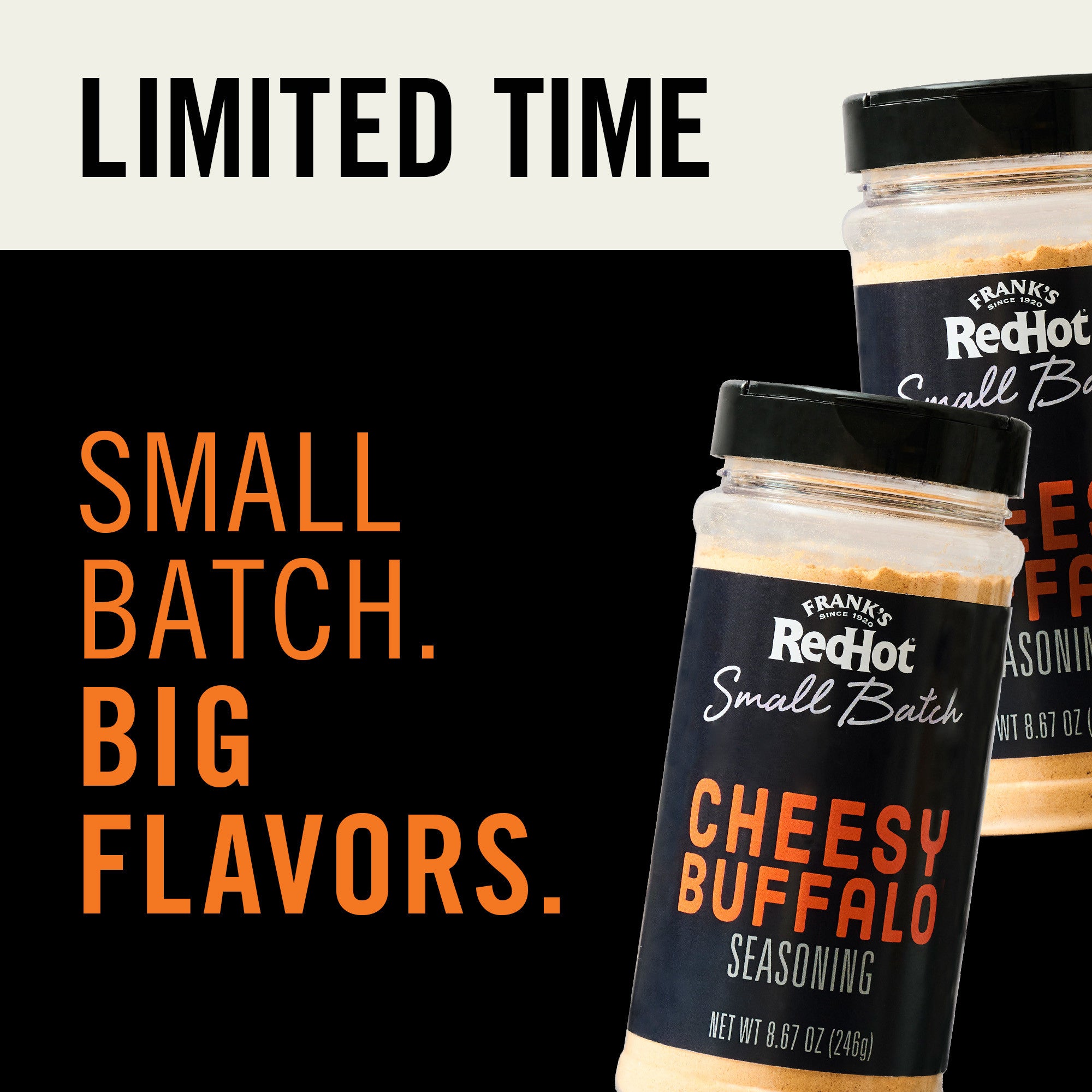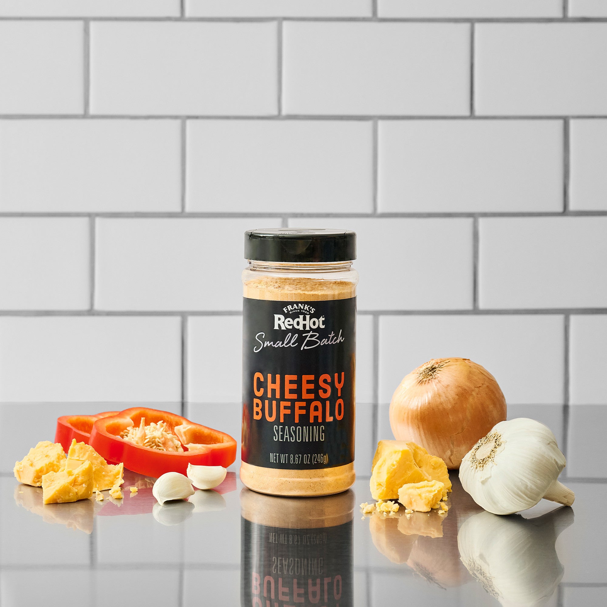 Frank’s RedHot® Small Batch Cheesy Buffalo Seasoning is the perfect blend of creamy, savory, cheesy Buffalo flavor and iconic Frank’s RedHot heat. Use it to push the boundaries of taste with on-trend flavor that will keep patrons coming back for more. Reach for this seasoning to shake menu items up a notch. Made for chefs, it’s a kicked up twist for so many dishes – from baked, fried, or grilled wings to mac ‘n cheese, burgers, and more. You can’t go wrong with craveable, cheesy flavor and heat.