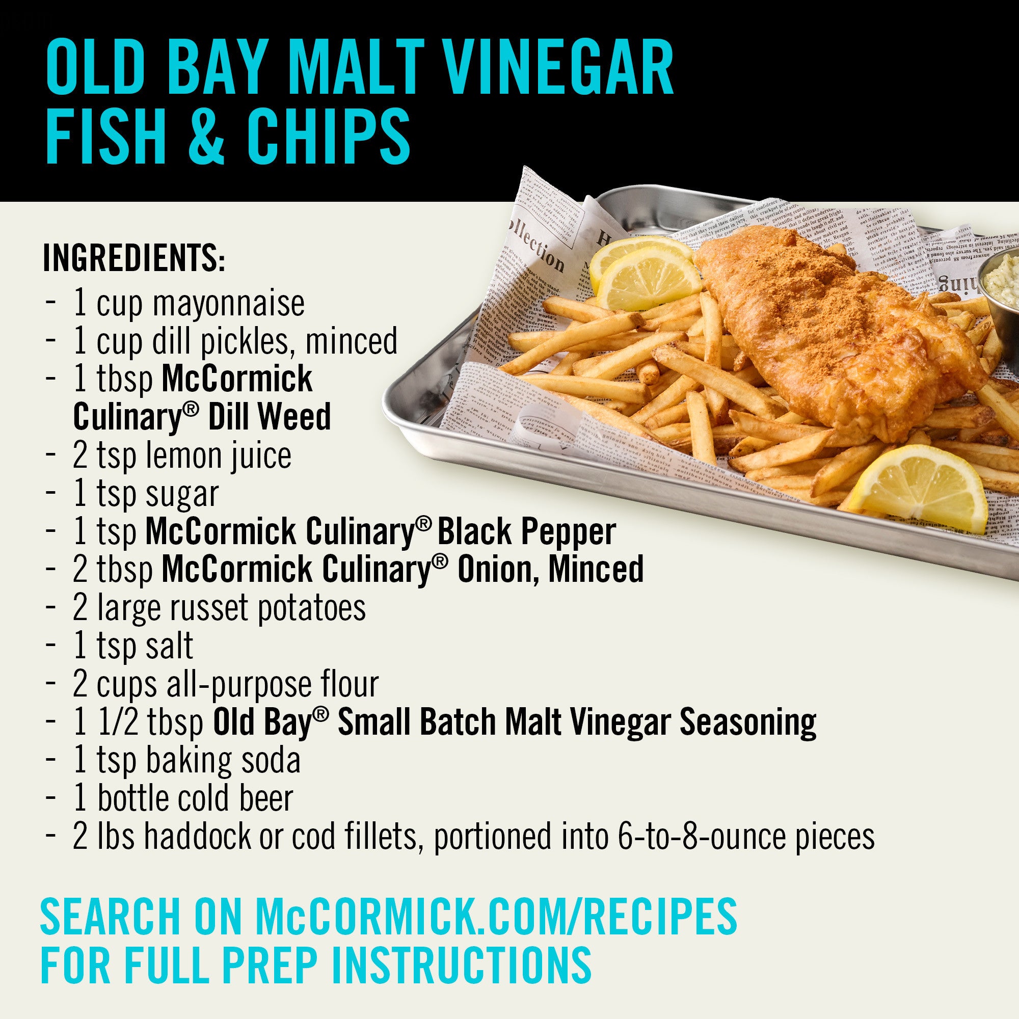 Inspired by the iconic flavor of OLD BAY® Seasoning, Small Batch OLD BAY Malt Vinegar Seasoning marries zesty OLD BAY with perfectly balanced notes of tangy malt vinegar for a distinctive, mouthwatering profile. Use it to push the boundaries of taste with on-trend flavor that will keep patrons coming back for more.