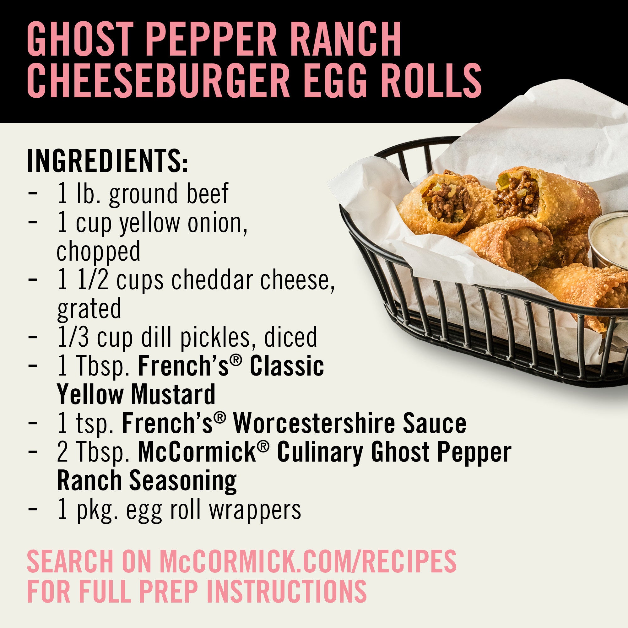 Inspired by the intense heat of ghost peppers and the creamy tang of ranch, McCormick® Culinary Small Batch Ghost Pepper Naturally Flavored Ranch Seasoning delivers a fiery kick and smooth finish. Use it to push the boundaries of taste with on-trend flavor that will keep patrons coming back for more. Crafted without compromise, ghost pepper ranch can enhance a variety of dishes – from meats to veggies, snacks, and more. Stir into softened butter for a hot ranch compound butter spread. Or mix into sour cream for a quick and easy dip to accompany everything from crudité to spiced baguette or chips. When it comes to the cool-hot balance of this seasoning, there’s no wrong way to innovate menu items with it.