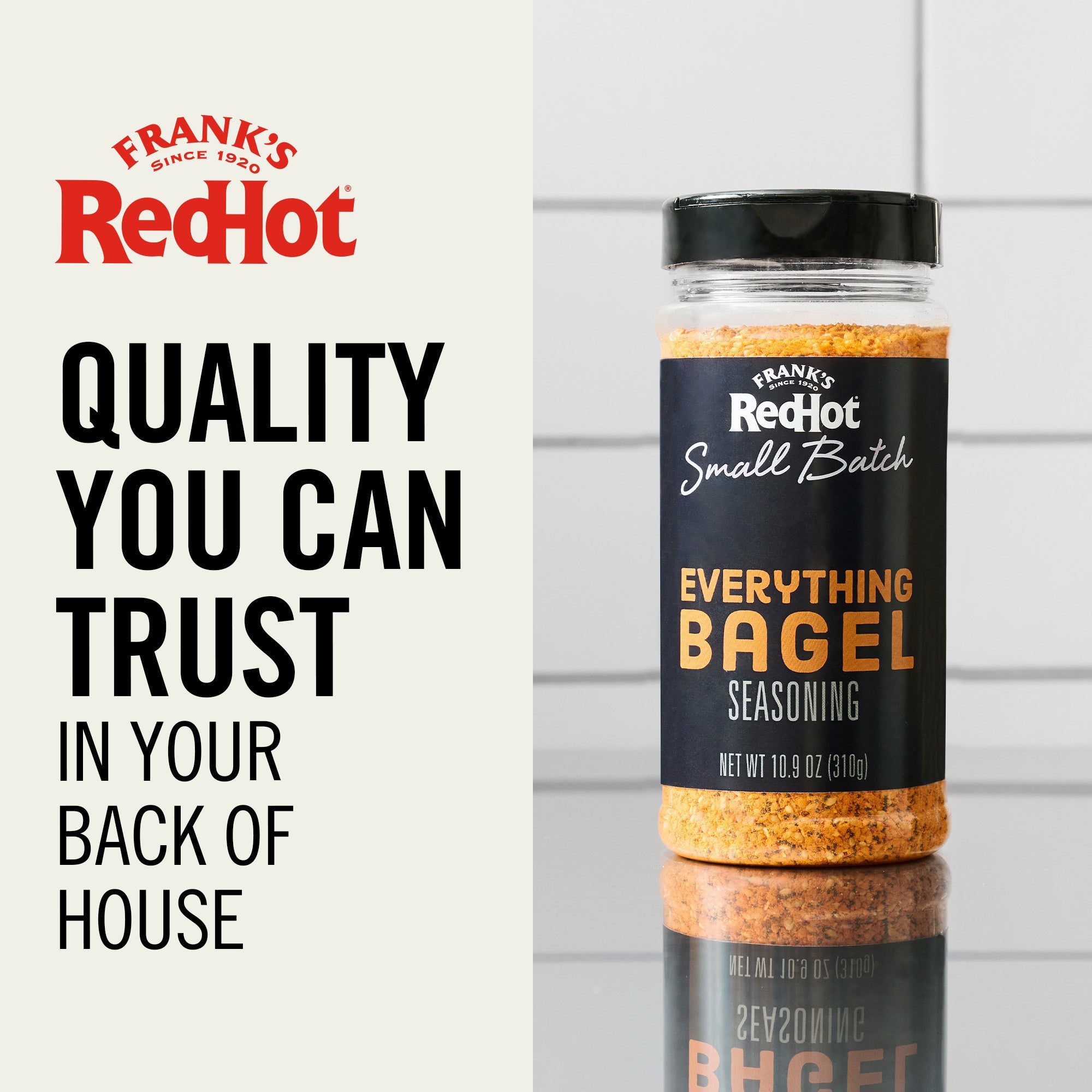 Frank’s RedHot® Small Batch Everything Bagel Seasoning is the perfect fusion of the ever-popular bagel shop seasoning and Frank’s RedHot. Use it to push the boundaries of taste with on-trend flavor that will keep patrons coming back for more. Reach for this seasoning to effortlessly shake menus up a notch. Made for chefs, it’s a delicious twist for so many dishes – shake on avocado toast or eggs, mix into burgers and pasta dishes, or rub it onto meats before grilling. You can’t go wrong with this craveable blend of savory flavor and heat.
